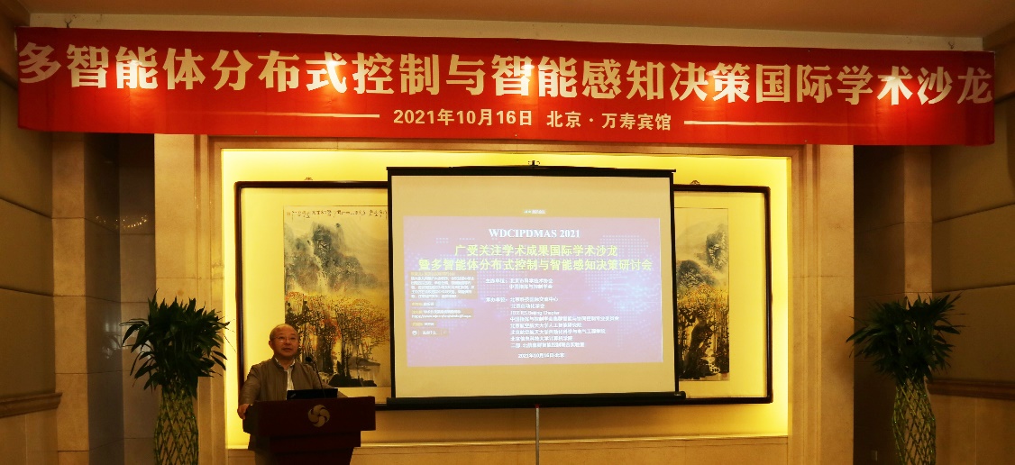 2021年10月16日,广受关注学术成果国际学术沙龙第五期暨多智能体分布式控制与智能感知决策研讨会在北京万寿宾馆隆重举行。本期国际学术沙龙由北京市科学技术协会与中国指挥与控制学会主办,北京欧美大片ppt免费大全人工智能研究院和北京欧美大片ppt免费大全自动化科学与电气工程学院联合北京科技国际交流中心、北京自动化学会、IEEE IES Beijing Chapter、中国指挥与控制学会集群智能与协同控制专业委员会、北京信息科技大学计算机学院、二部-北航集群智能控制联合实验室等单位一起承办。来自全球多智能体分布式控制与智能感知决策领域相关高校、院所和企业的1300余名代表通过线下线上相结合的方式参加了本期学术沙龙。